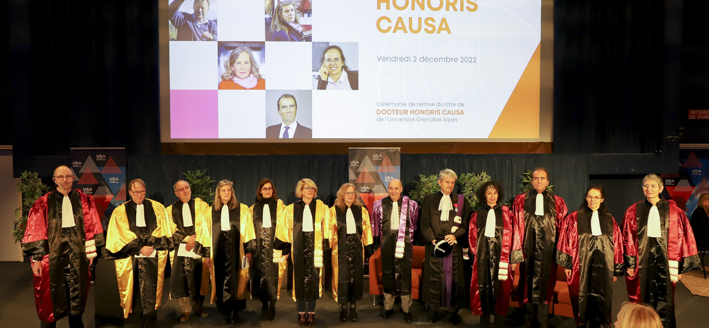 On Friday, 2 December 2022, Yassine Lakhnech, President of Université Grenoble Alpes, officially awarded the title of Doctor Honoris Causa to five eminent international personalities. This ceremony was the first Honorary Doctorate ceremony of Université Grenoble Alpes (UGA) since the integration in 2020 of Grenoble INP, the Institute of Engineering and Management - UGA, Science Po Grenoble - UGA, and the Ecole nationale supérieure d'architecture de Grenoble ENSAG - UGA.
